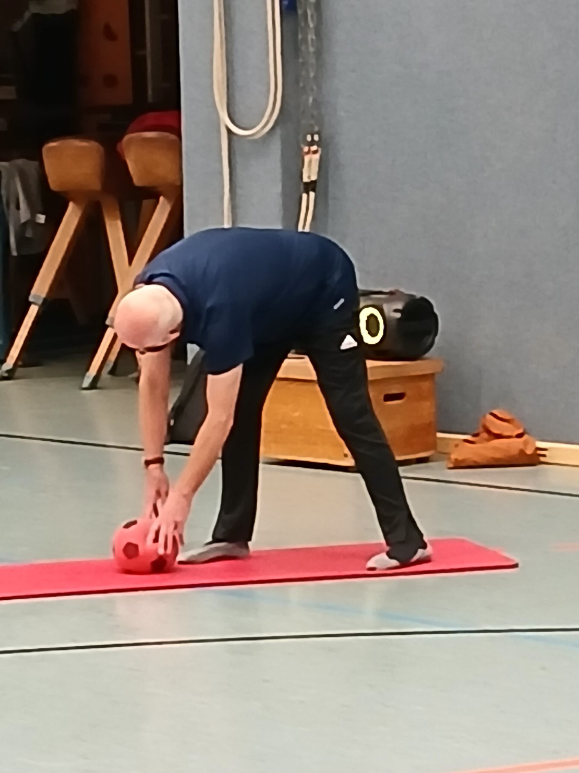 Anschließend üben wir mit Kleingeräte im Stehen oder Gehen für die Verbesserung der Körperwahrnehmung, teilweise auch in Partnerübungen. Oft machen wir zum Schluss ein Spiel mit Bewegung, Gleichgewicht, Wahrnehmung und Konzentration.